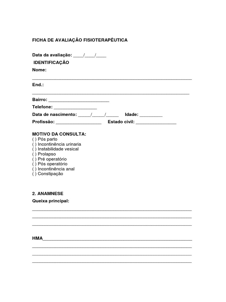 FICHA DE AVALIAÇÃO FISIOTERAPÊUTICA