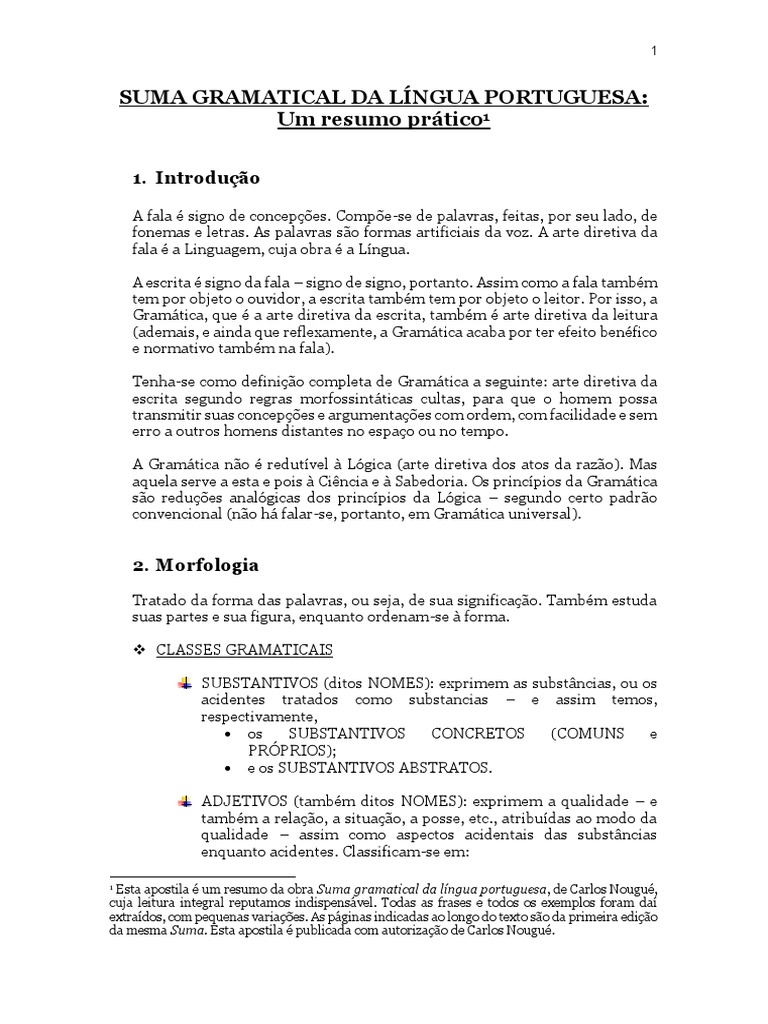 1Esta apostila é um resumo da obra Suma gramatical da língua portuguesa, de Carlos Nougué,