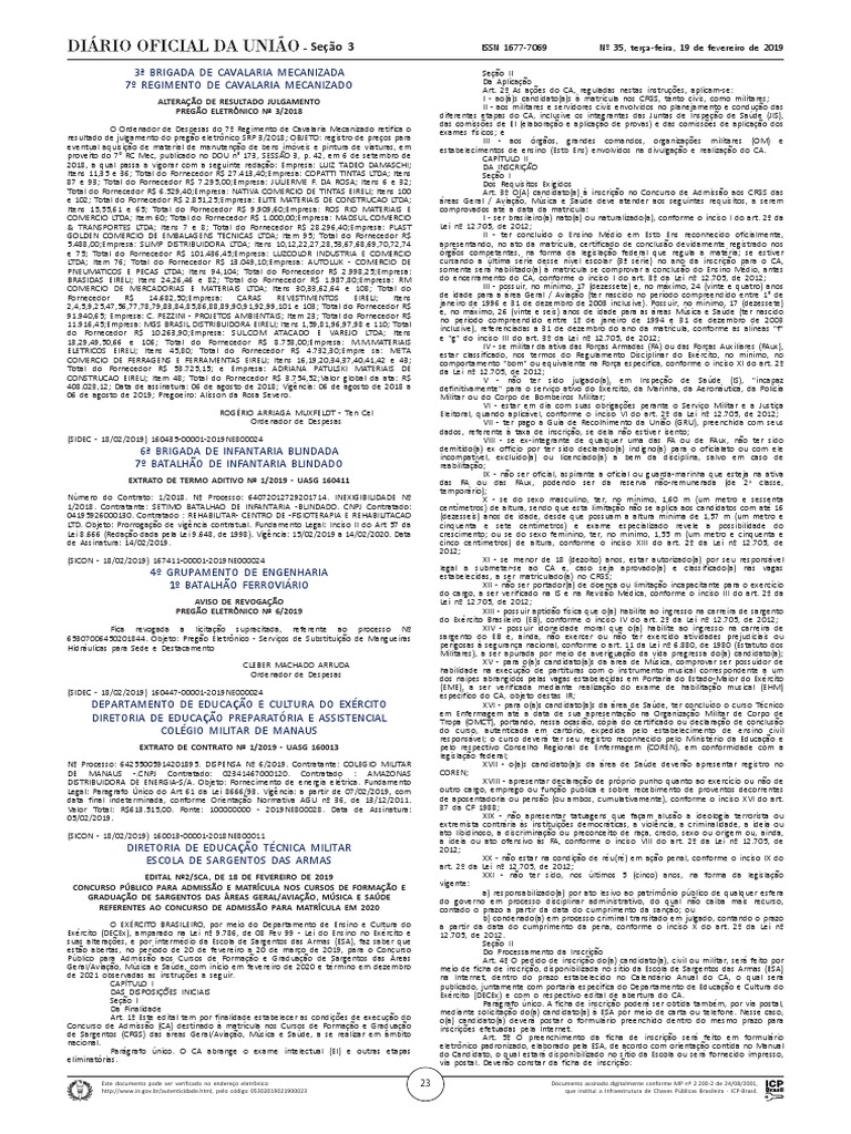 Seção 3 ISSN 1677-7069 Nº 35, terça-feira, 19 de fevereiro de 2019