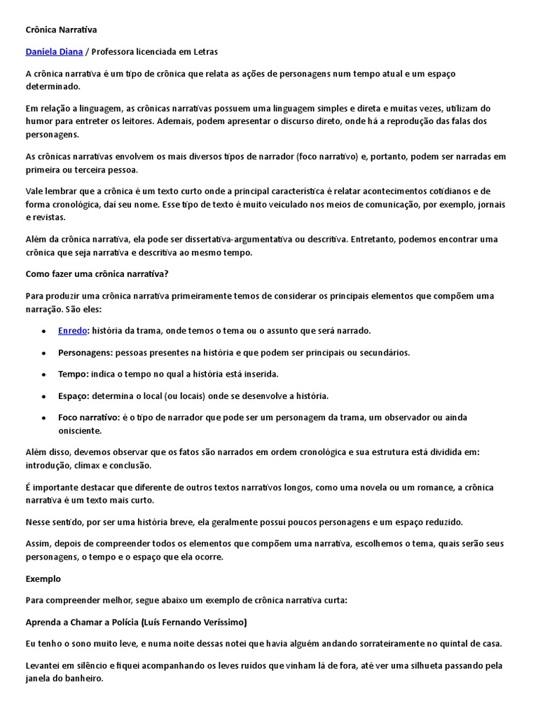 É importante destacar que diferente de outros textos narrativos longos, como uma novela ou um romance, a crônica