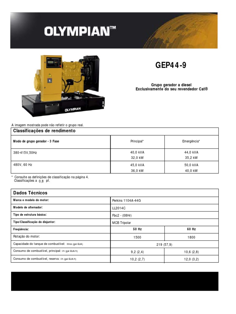 Consulte o seu revendedor OLYMPIAN local sobre classificações de potência em condições locais
