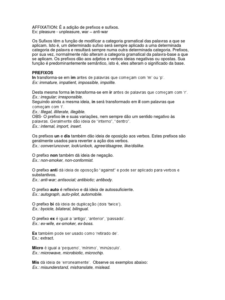 se aplicam. Os prefixos dão aos adjetos e verbos ideias negativas ou opostas. Sua
