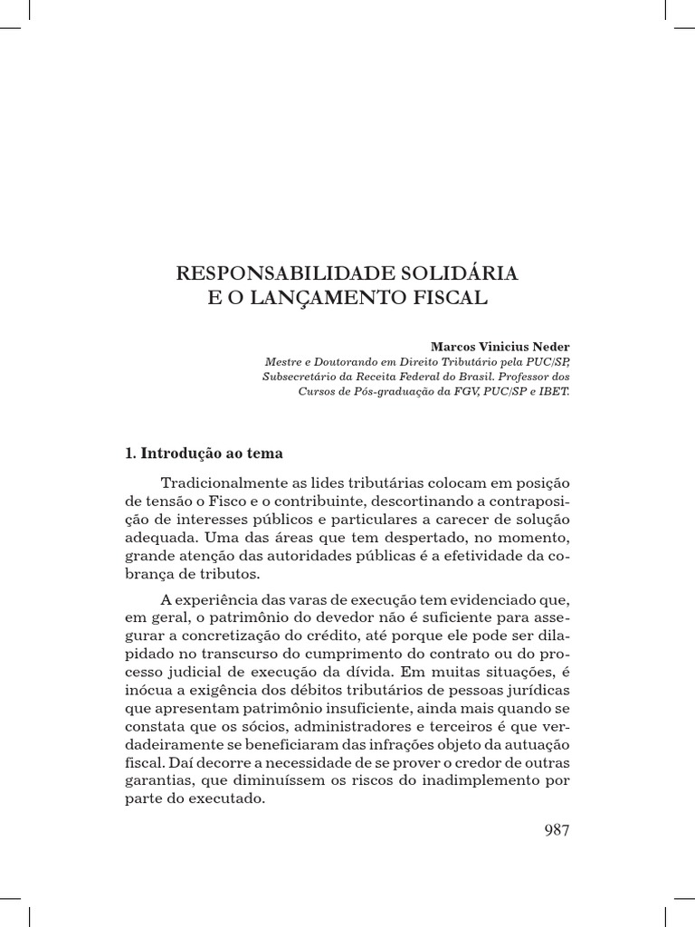 do tributo e de responsabilidade). Dependendo da situação e da