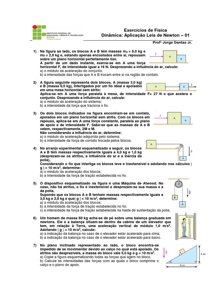 1) Na figura ao lado, os blocos A e B têm massas mA = 6,0 kg e