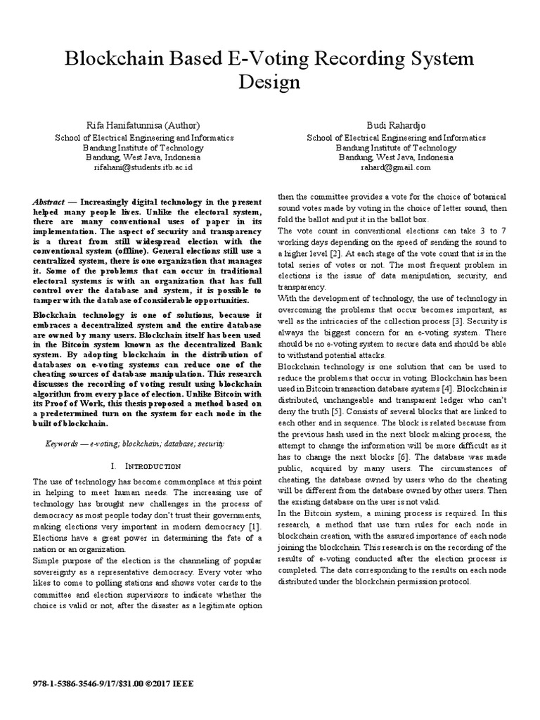 in other words having the means to identify nodes that can [8] C. Meter, “Design of Distributed Voting Systems,” no. September,