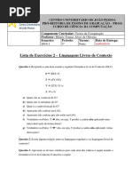 Lista de Exercícios 1 – Linguagens Regulares