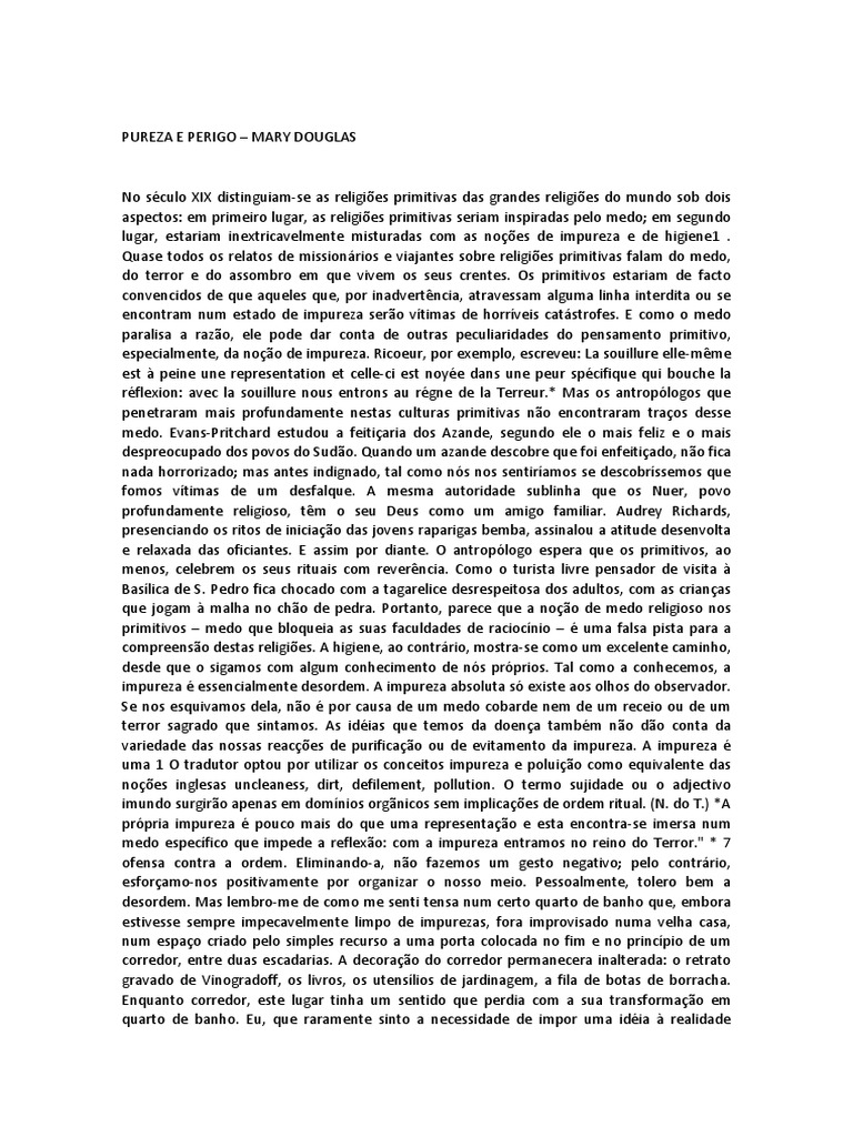 poluição e a purificação. (...) Alguns modestos conhecimentos de antropologia ter-lhe-iam