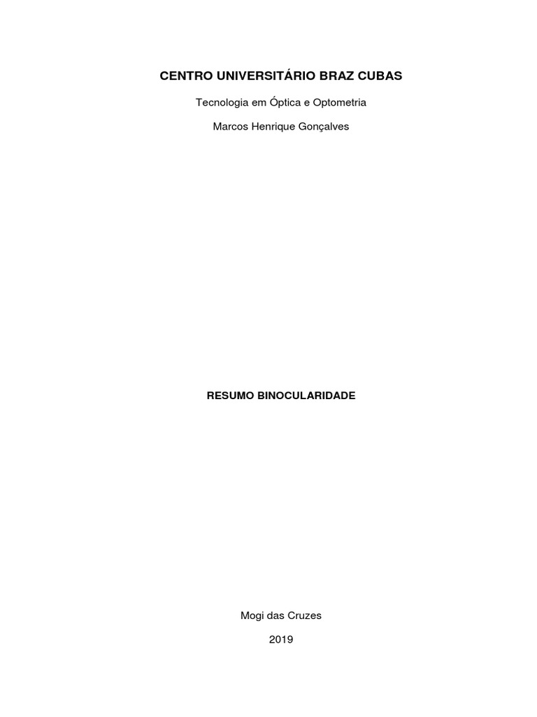 Baseado nos Slides de Binocularidade, professora Rosa Berzghal