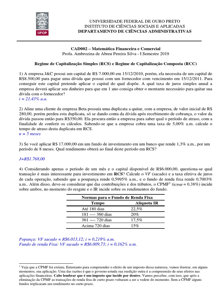 a.m.. Além disso, deve-se considerar que das contribuições e dos tributos, o CPMF1 (iCPMF = 0,38%) incide