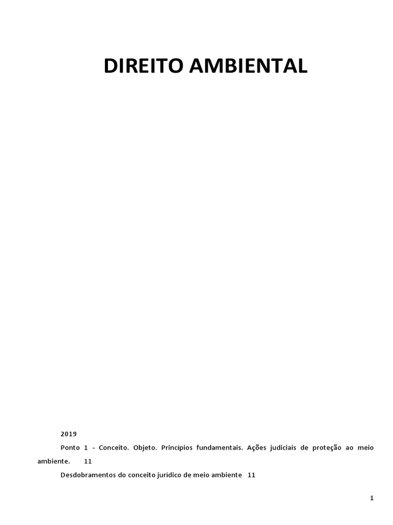 Ponto 1 - Conceito. Objeto. Princípios fundamentais. Ações judiciais de proteção ao meio