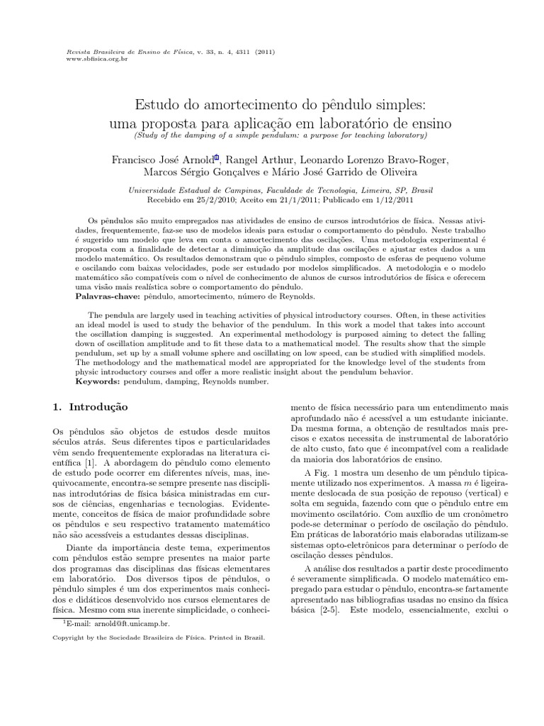 Estudo do amortecimento do pêndulo simples: uma proposta para aplicação em laboratório de ensino 4311-3