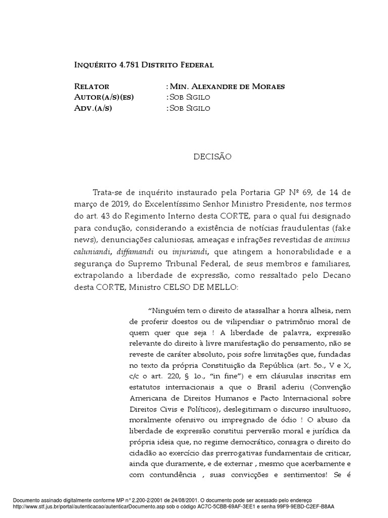 http://www.stf.jus.br/portal/autenticacao/autenticarDocumento.asp sob o código AC7C-5CBB-69AF-3EE1 e senha 99F9-9EBD-C2EF-B8AA