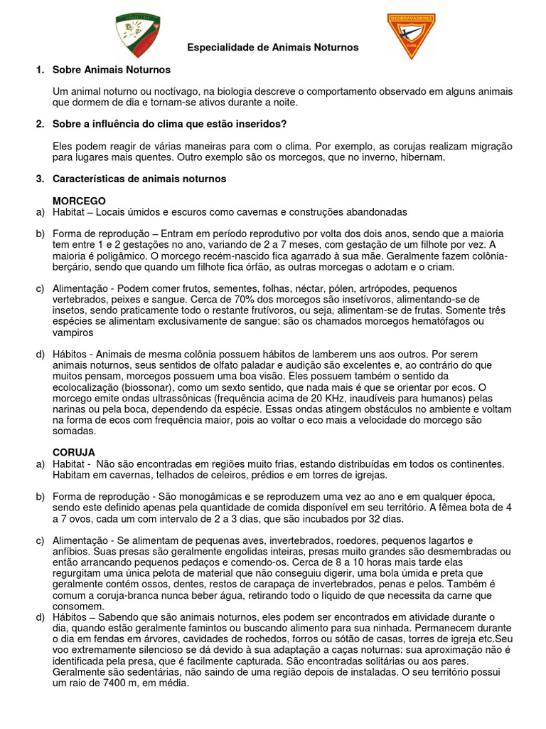 d) Hábitos – Sabendo que são animais noturnos, eles podem ser encontrados em atividade durante o