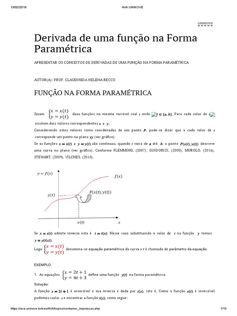FUNÇÃO NA FORMA PARAMÉTRICA