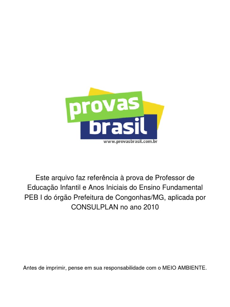 PEB I do órgão Prefeitura de Congonhas/MG, aplicada por