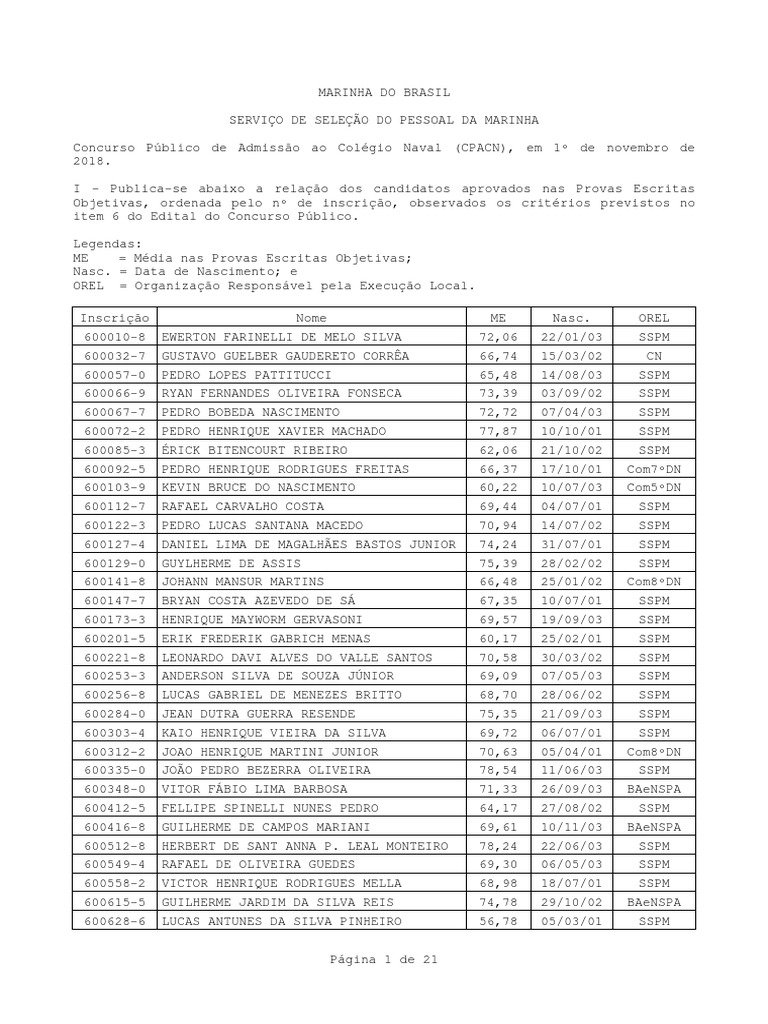 600905-7 LUCAS DE SOUZA BRAZ DOS SANTOS 59,92 22/01/03 SSPM