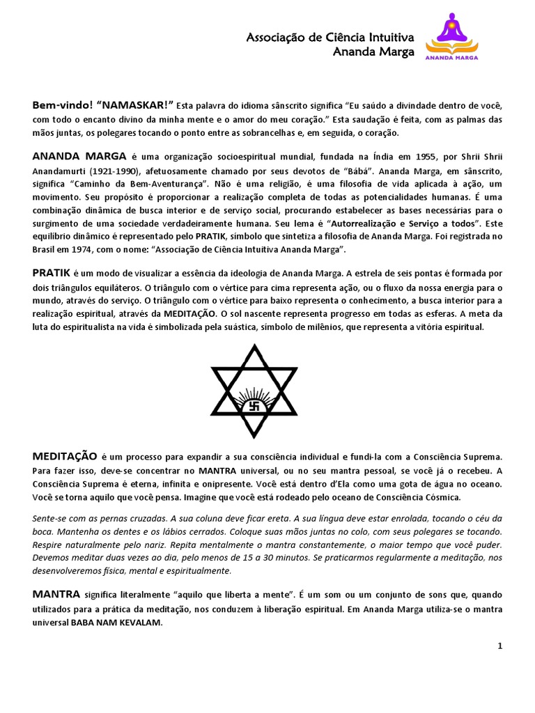 Brasil em 1974, com o nome: “Associação de Ciência Intuitiva Ananda Marga”.