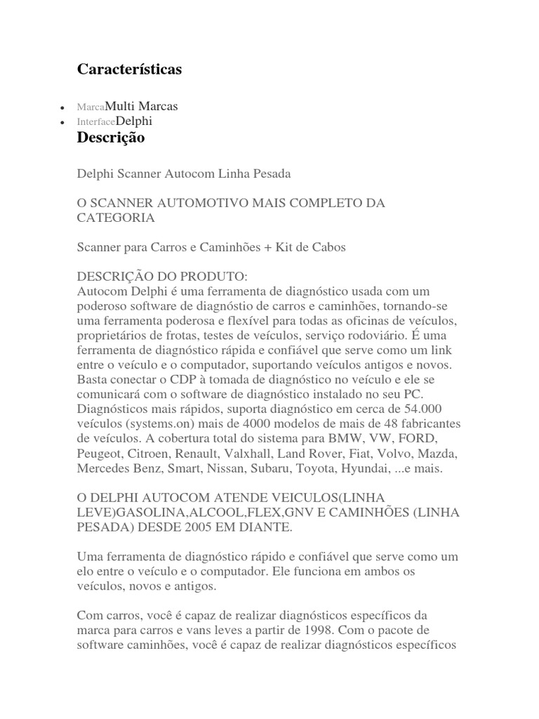 Delphi Scanner Autocom Linha Pesada