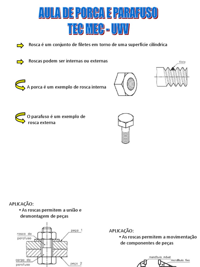 * Avanço – é a distância, medida axialmente, que o parafuso percorre