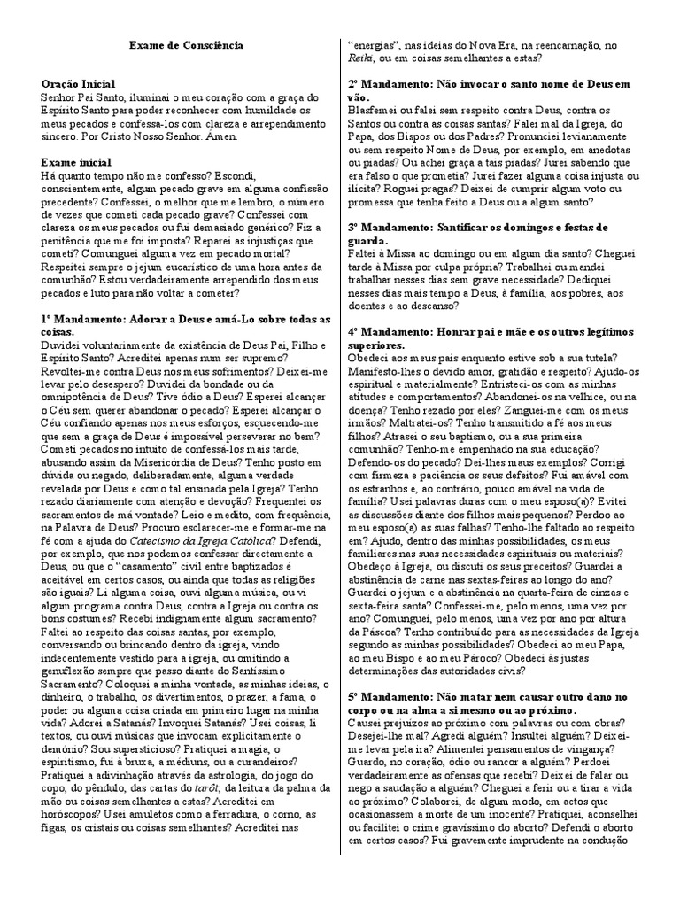 cometi? Comunguei alguma vez em pecado mortal? Faltei à Missa ao domingo ou em algum dia santo? Cheguei