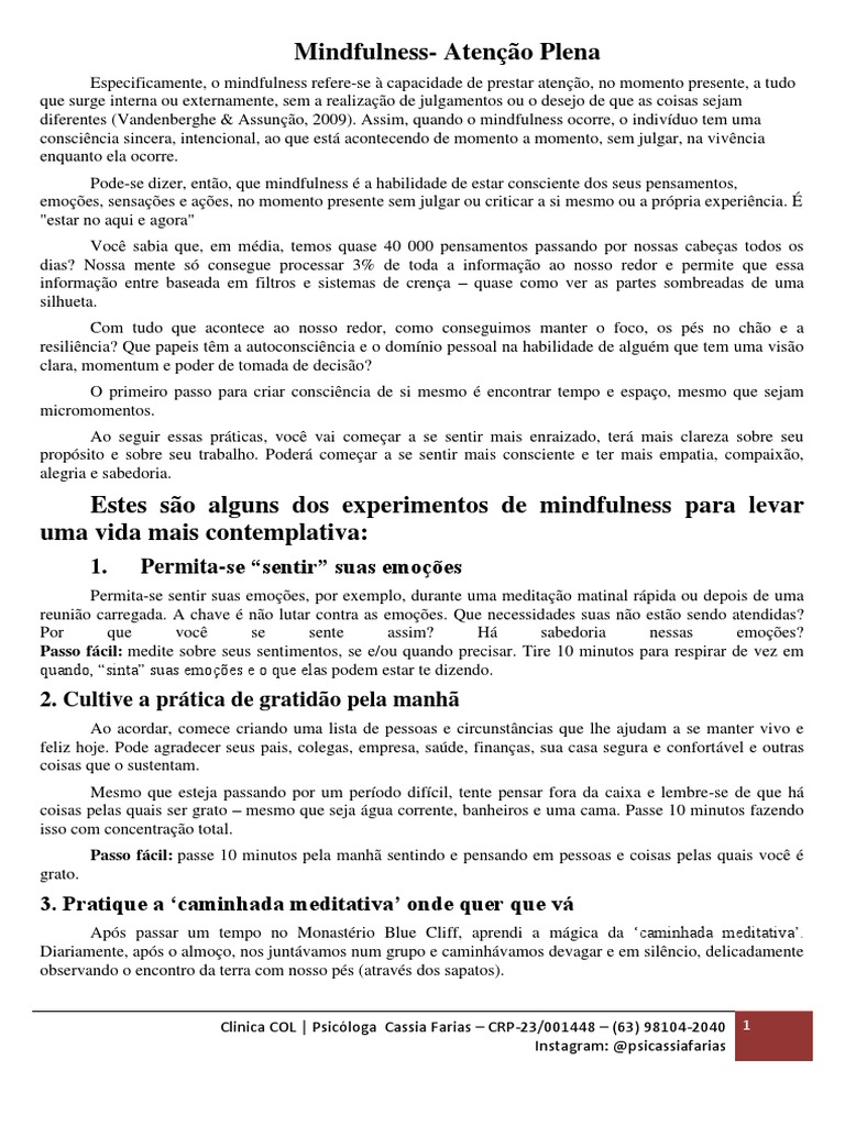 diferentes (Vandenberghe & Assunção, 2009). Assim, quando o mindfulness ocorre, o indivíduo tem uma