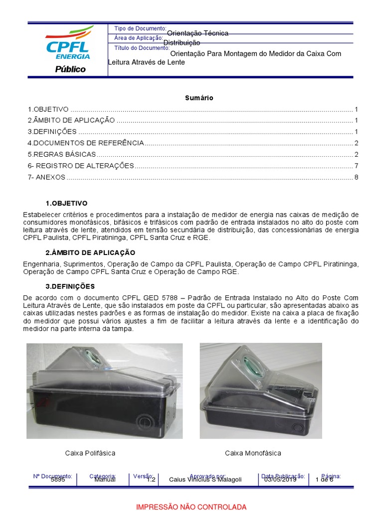 De acordo com o documento CPFL GED 5788 – Padrão de Entrada Instalado no Alto do Poste Com