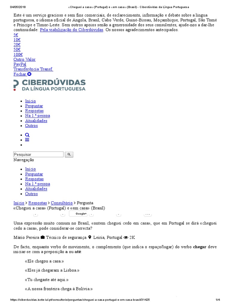 04/05/2018 «Cheguei a casa» (Portugal) e «em casa» (Brasil) - Ciberdúvidas da Língua Portuguesa