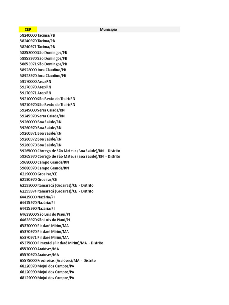 Listagem de Códigos de CEP por Município