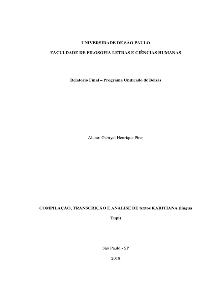 COMPILAÇÃO, TRANSCRIÇÃO E ANÁLISE DE textos KARITIANA (língua