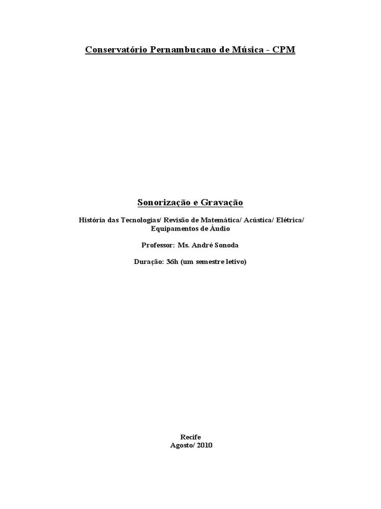 História das Tecnologias/ Revisão de Matemática/ Acústica/ Elétrica/