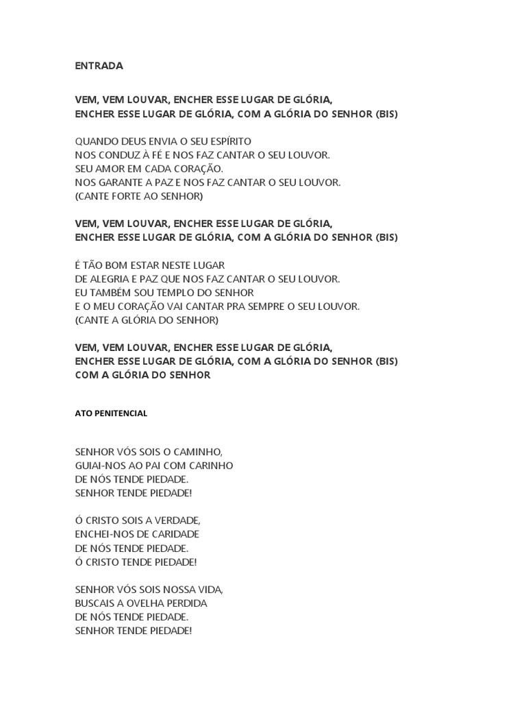 DE ALEGRIA E PAZ QUE NOS FAZ CANTAR O SEU LOUVOR.