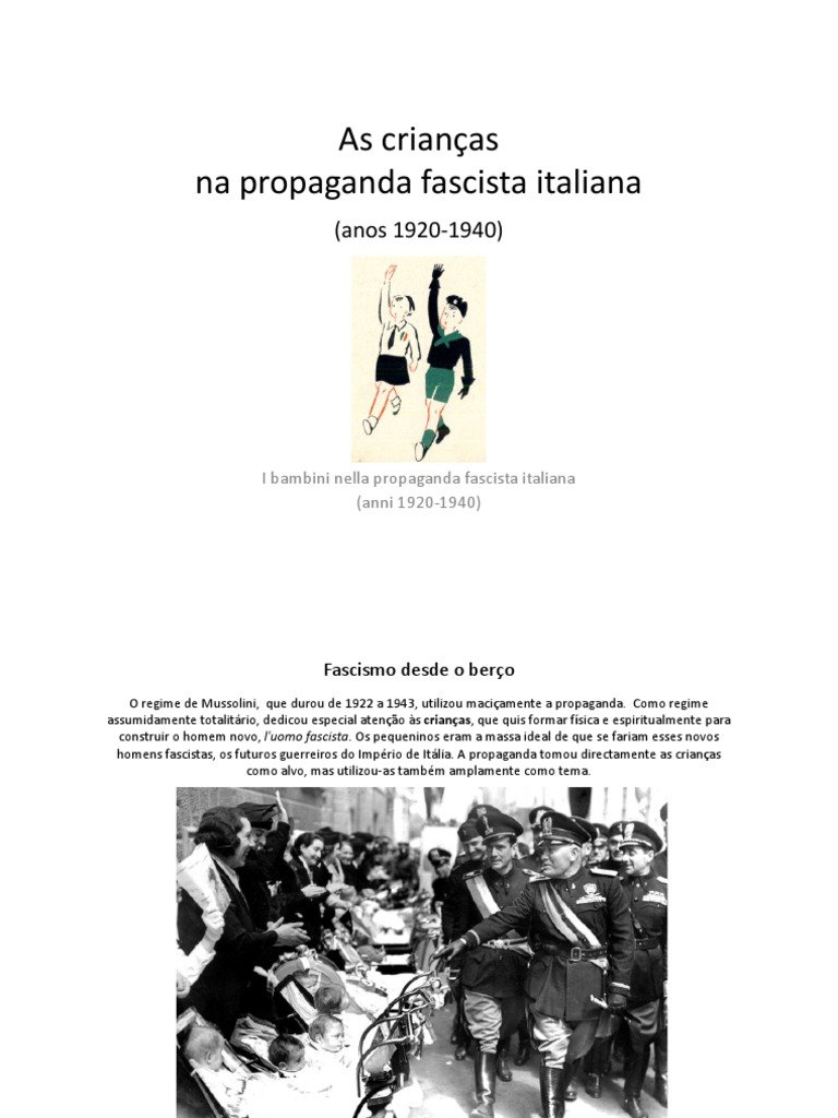 construir o homem novo, l’uomo fascista. Os pequeninos eram a massa ideal de que se fariam esses novos