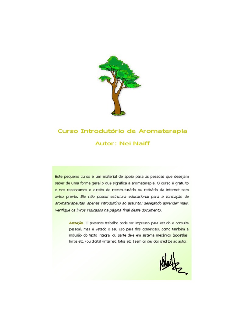 saber de uma forma geral o que significa a aromaterapia. O curso é gratuito