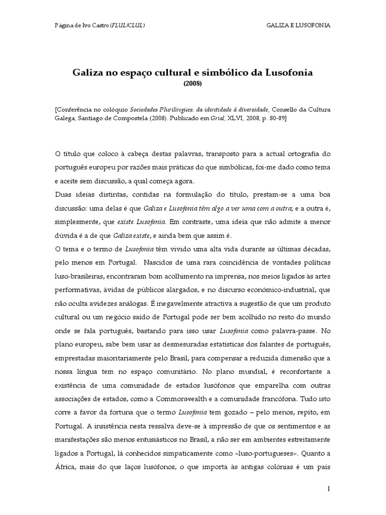 Página de Ivo Castro (FLUL/CLUL) GALIZA E LUSOFONIA
