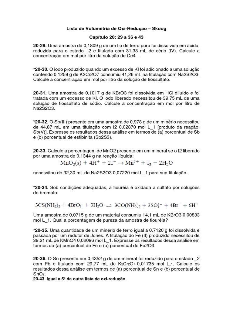 20-36. O Sn presente em 0,4352 g de um mineral foi reduzido para o estado _2
