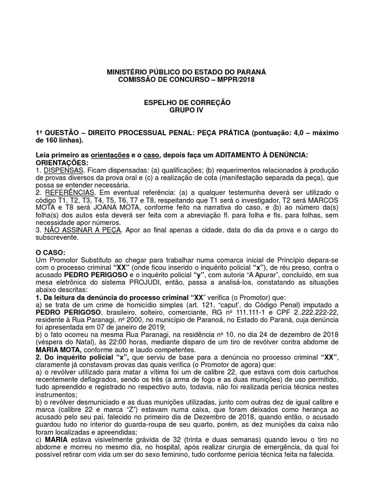 1. Da leitura da denúncia do processo criminal “XX” verifica (o Promotor) que: