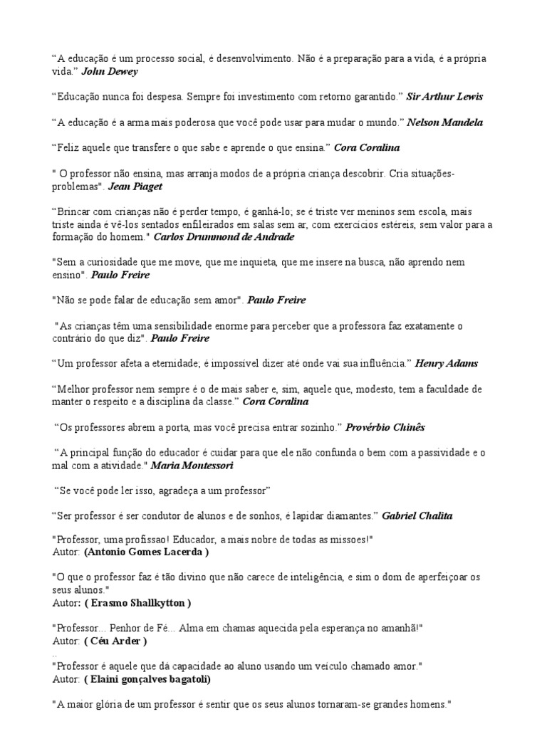 "Professor, sua tarefa é cuidar que o aluno aprenda. Sua glória é o aluno que sabe pensar."