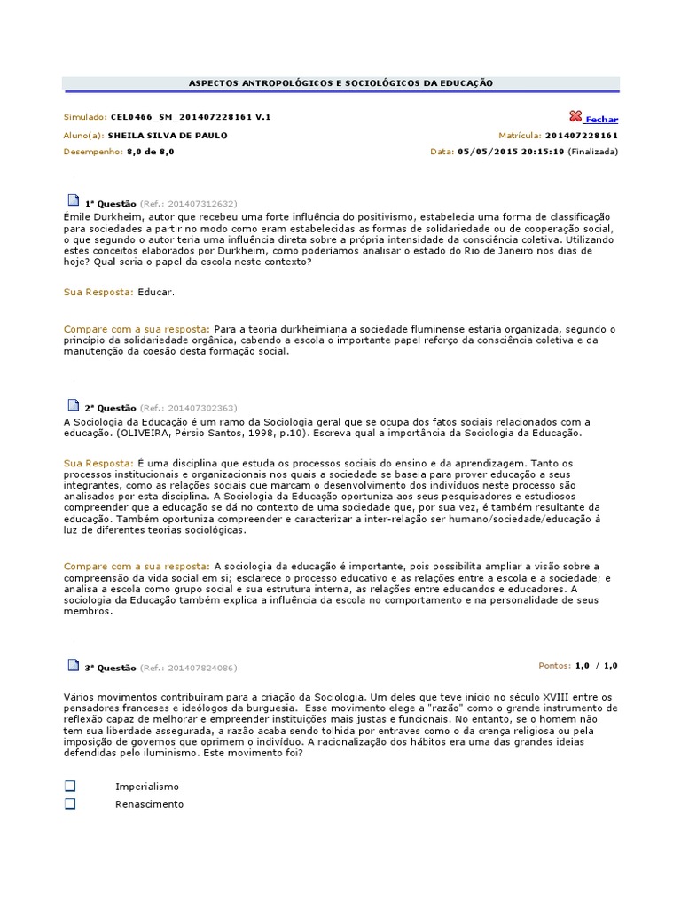 Compare com a sua resposta: A sociologia da educação é importante, pois possibilita ampliar a visão sobre a