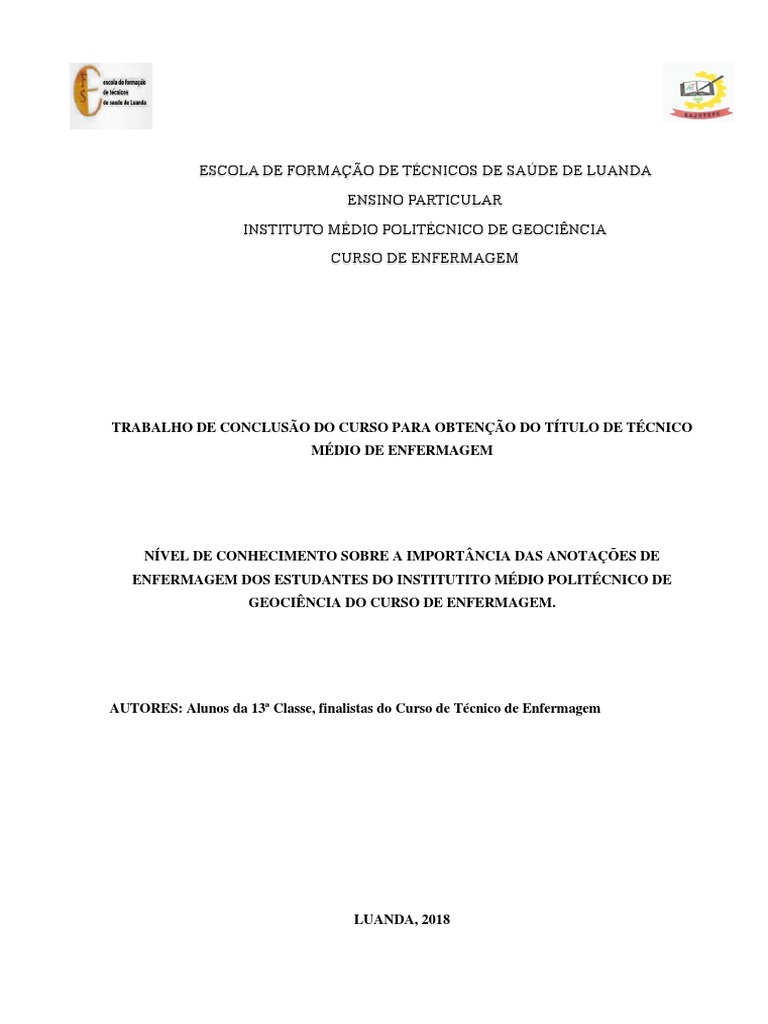 ENFERMAGEM DOS ESTUDANTES DO INSTÍTUTO MÉDIO POLITÉCNICO DE