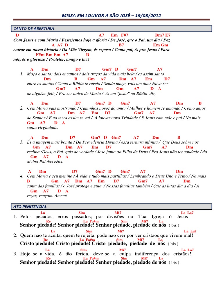 MISSA EM LOUVOR A SÃO JOSÉ – 19/03/2012