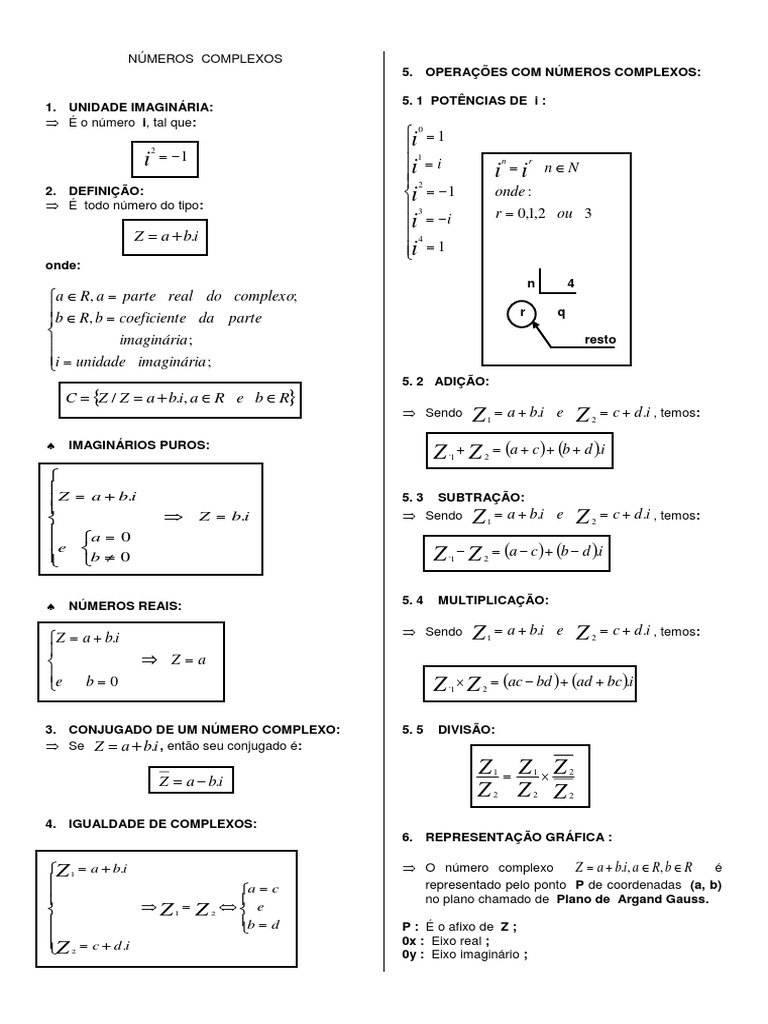 5. OPERAÇÕES COM NÚMEROS COMPLEXOS: