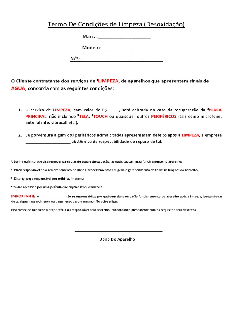 Termo De Condições de Limpeza (Desoxidação)