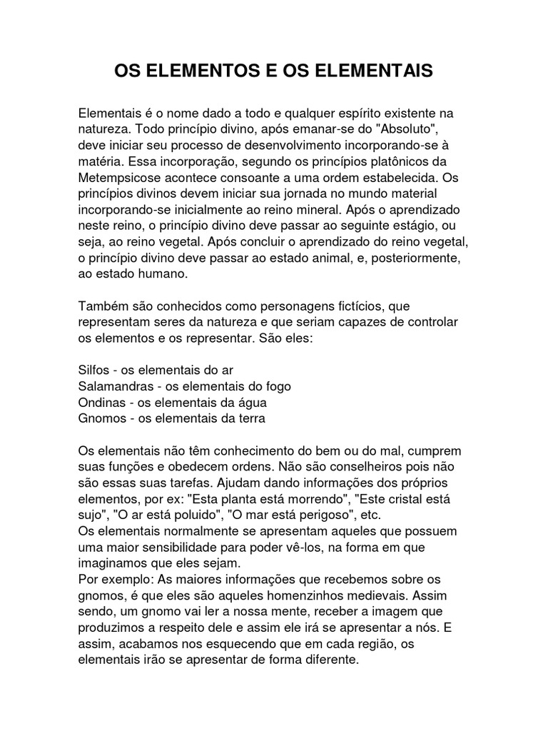 Elementais é o nome dado a todo e qualquer espírito existente na
