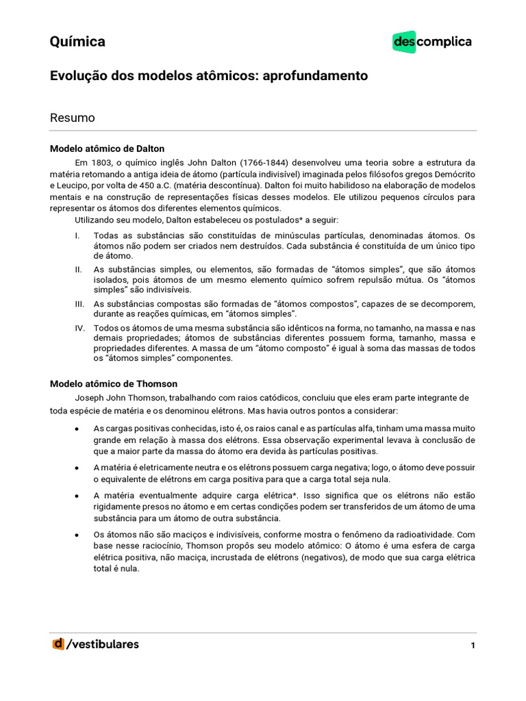 de Dalton: átomos maciços, indivisíveis e indestrutíveis.