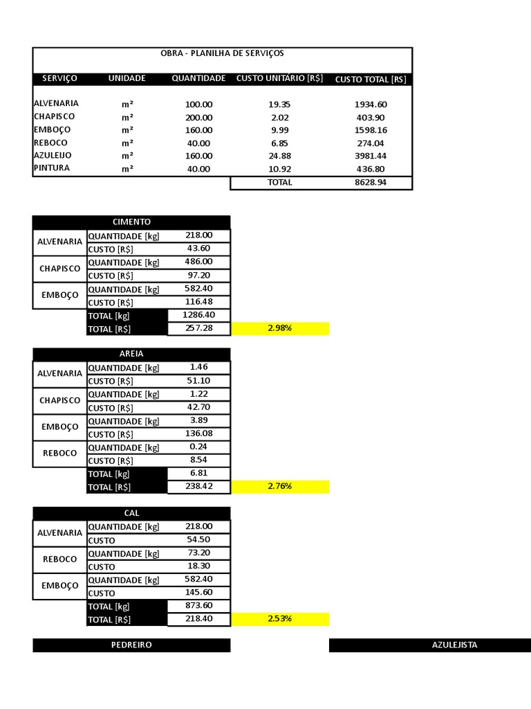 CUSTO 138.00 ARGAMASSA PRONTA