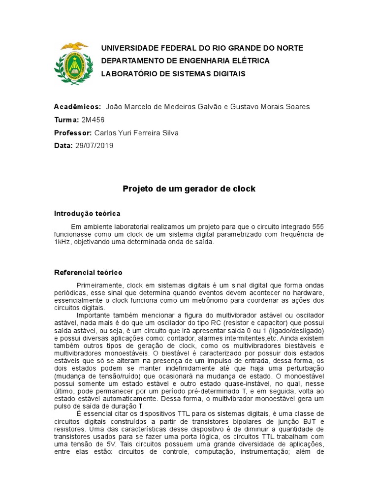 Primeiramente, clock em sistemas digitais é um sinal digital que forma ondas