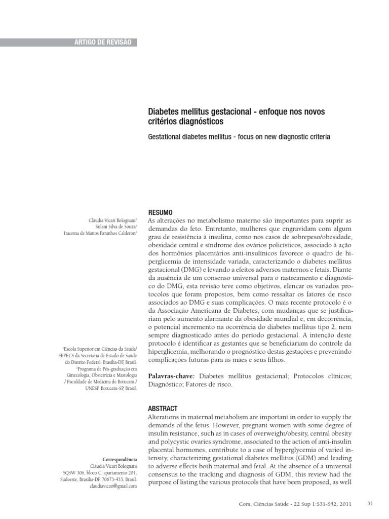 Correspondência tensity, characterizing gestational diabetes mellitus (GDM) and leading
