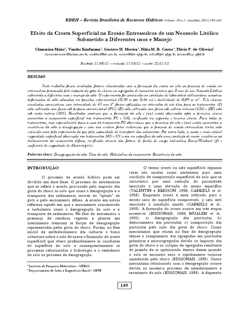 planar surfaces. Catena, v. 78, p. 2—11. 2009. sistemas de manejo. Revista Brasileira de Ciência do