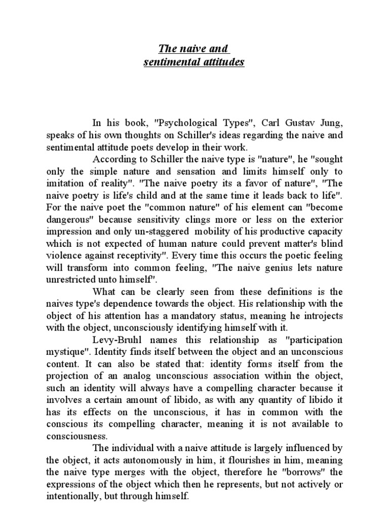 speaks of his own thoughts on Schiller's ideas regarding the naive and