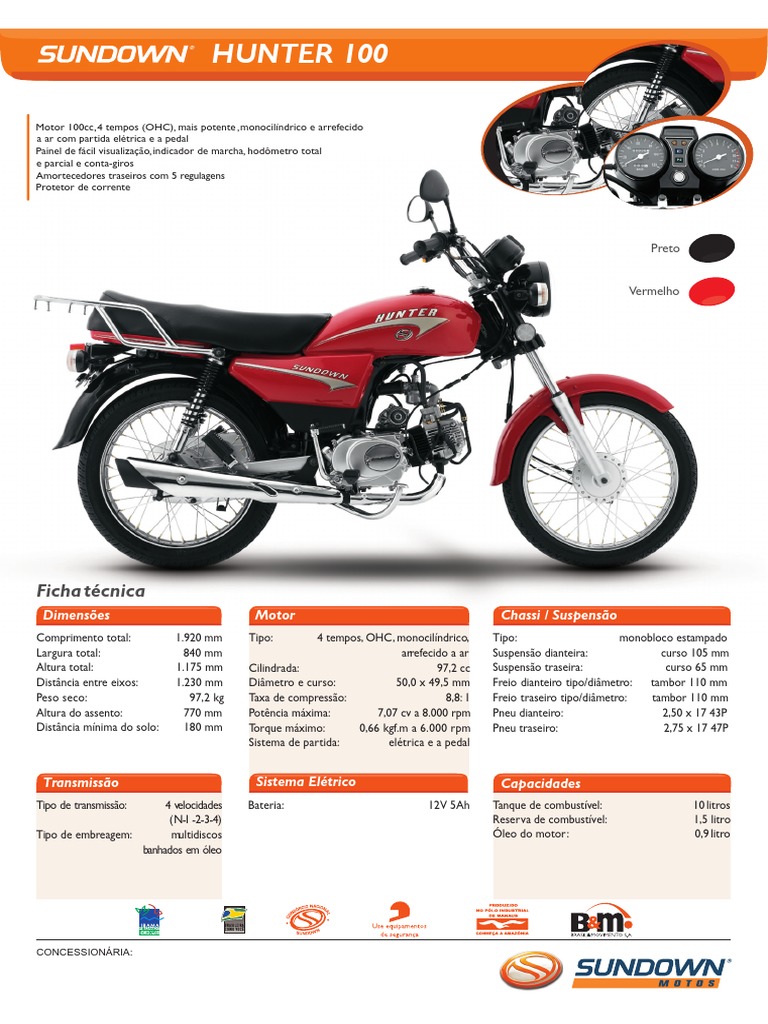 Motor 100cc ,4 tempos (OHC), mais potente ,monocilíndrico e arrefecido